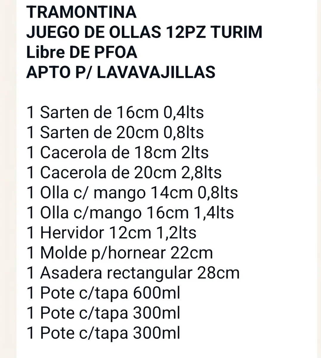BATERIA DE COCINA 12pcs TRAMONTINA TURIM