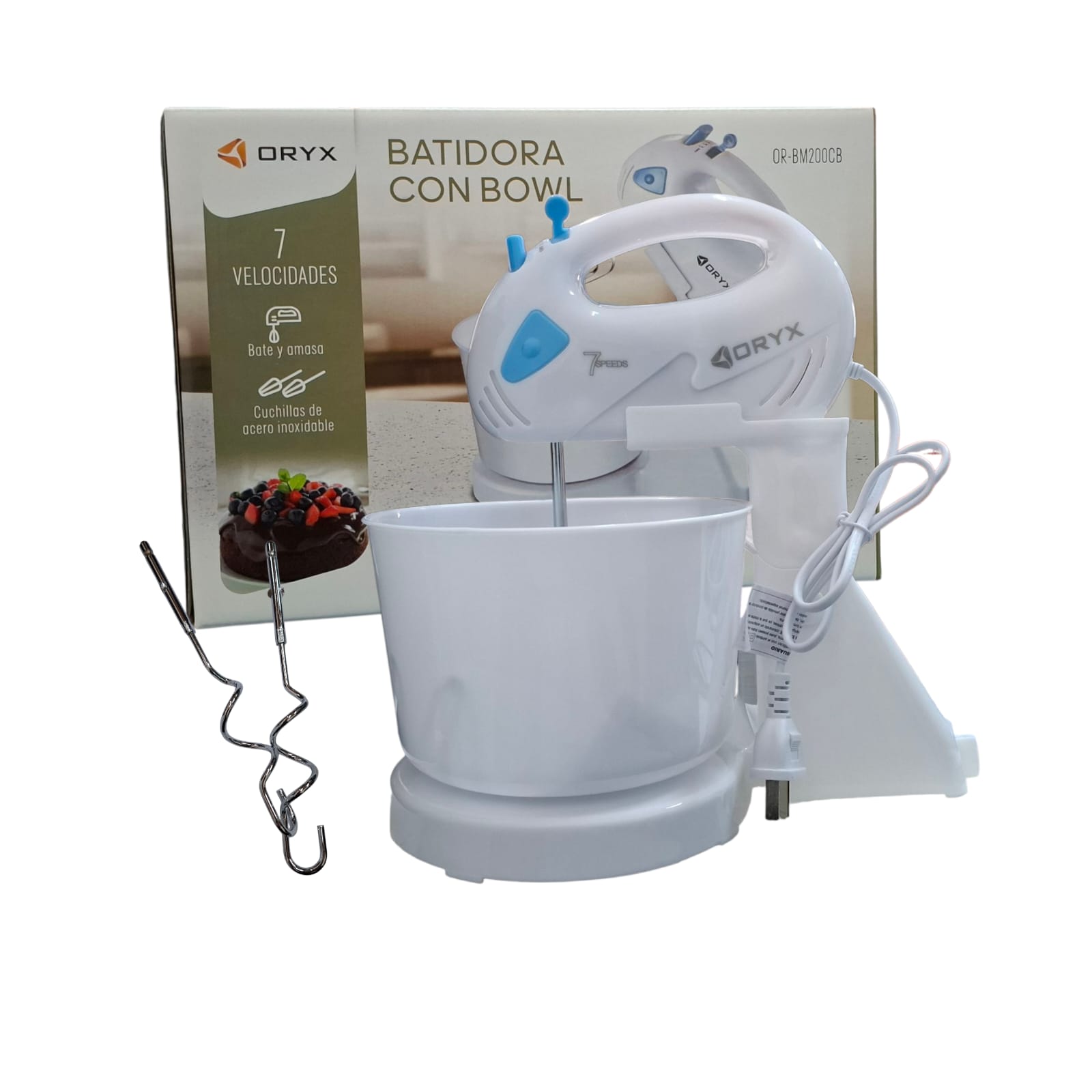 * 7 velocidades * Bate y amasa * Cuchillas de acero inoxidable * Potencia:200W * Incluye bowl
