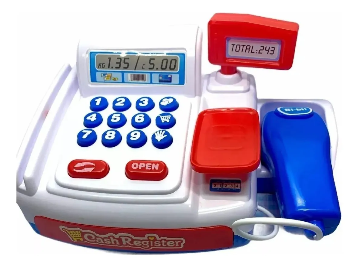 La caja registradora mide aprox 20cm x 15cm x 10cm (con lector incluído).