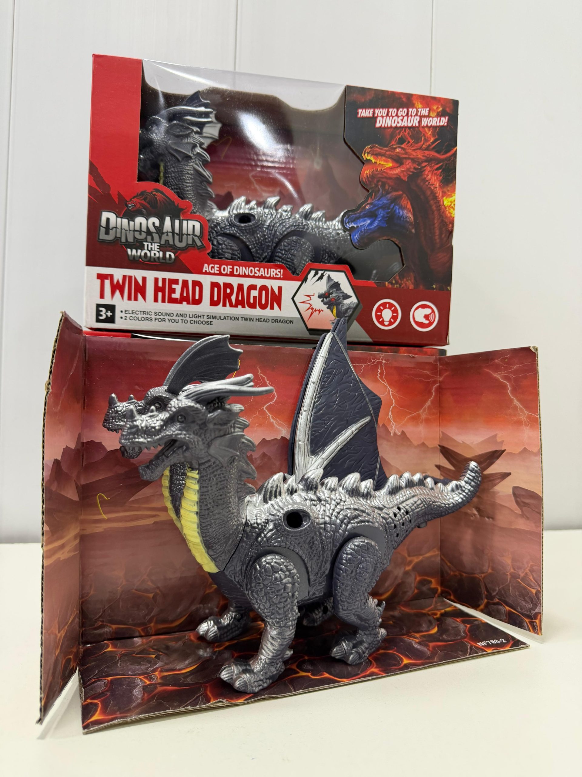 Dragon o dinosaurio con movimiento, Adaptado con alas, luz, sonido, movimiento, camina. Al encenderlo: emite sonidos, emite luces en ojos y comienza a caminar. Utiliza 2 Pilas AA (no incluidas)