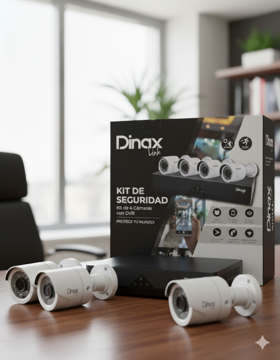 Kit de 4 cámaras con DVR Dinax. Sistema de grabación de seguridad.