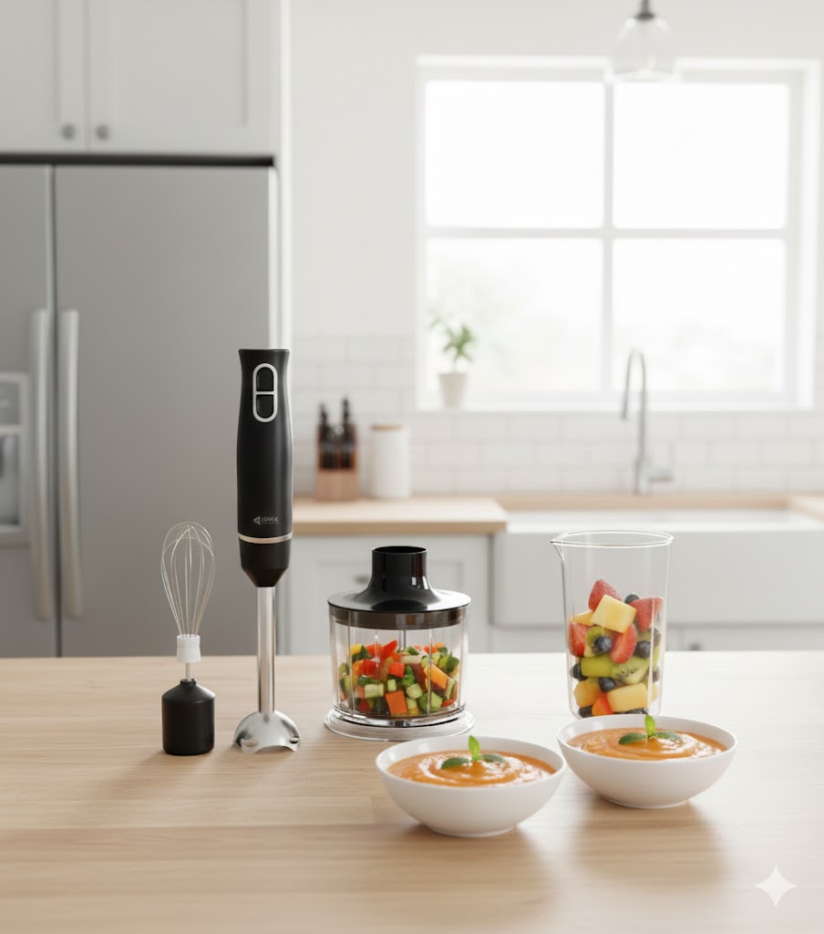 ¡La herramienta perfecta para tu cocina! Esta Mini Pimer 4 en 1 combina potencia, versatilidad y diseño compacto para facilitar todas tus preparaciones diarias. Ideal para quienes buscan practicidad sin renunciar a resultados profesionales.