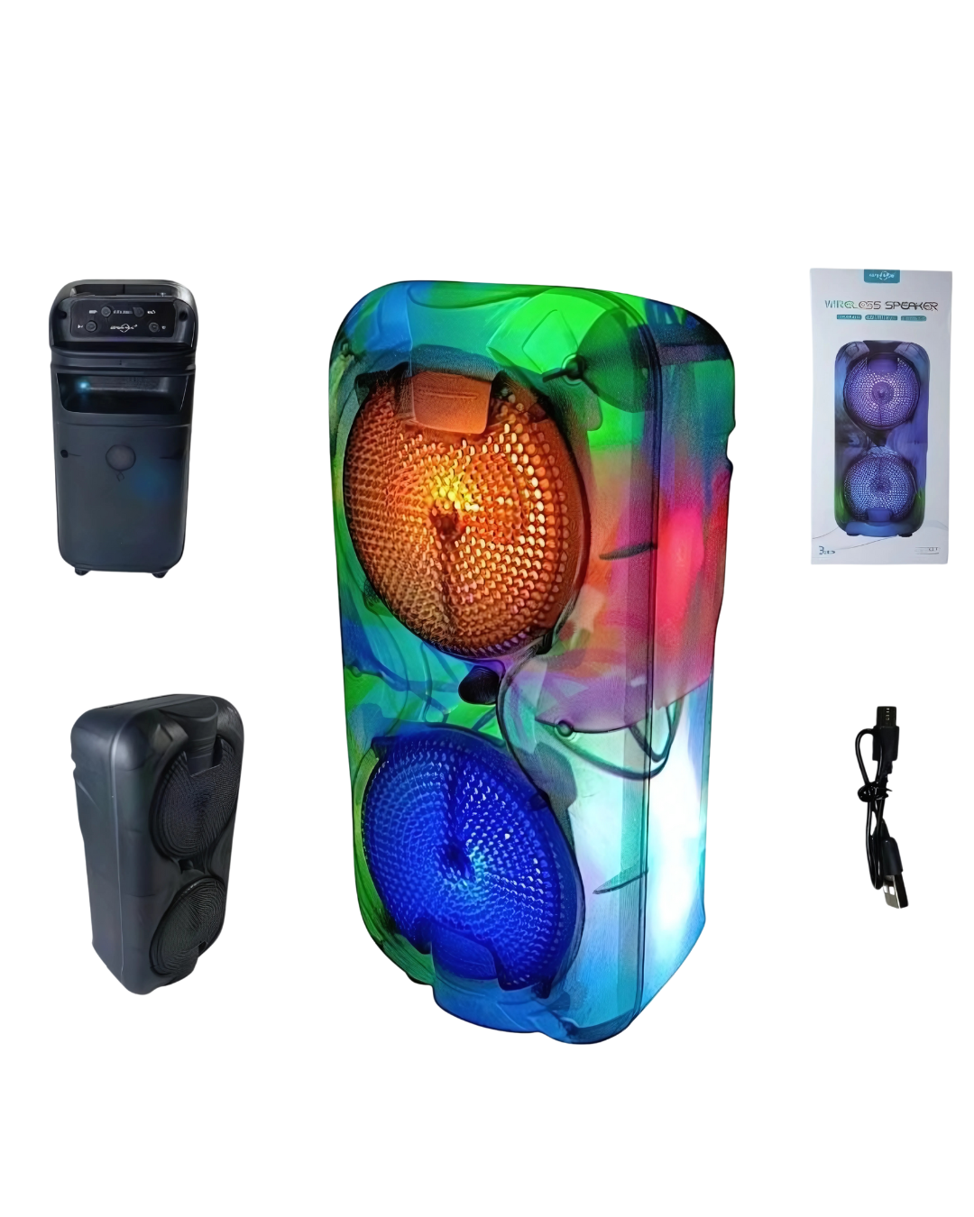 Parlante Portátil Potencia 5w. Conectividad Bluetooth, USB, tf. Radio FM. Con luces LED RGB para una experiencia visual vibrante.