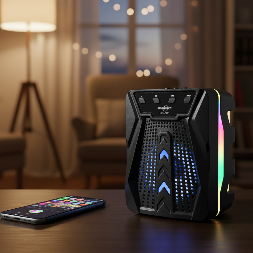 Bocina Bluetooth 4″ con Luz LED, incluye entradas USB, micro SD y MIC para micrófono, ideal para llevarla a donde quieras y arme tu fiesta, su gran sonido e iluminación hará más agradable el ambiente. Tiene la función de Radio FM, es de batería recargable e incluye un cable V8.