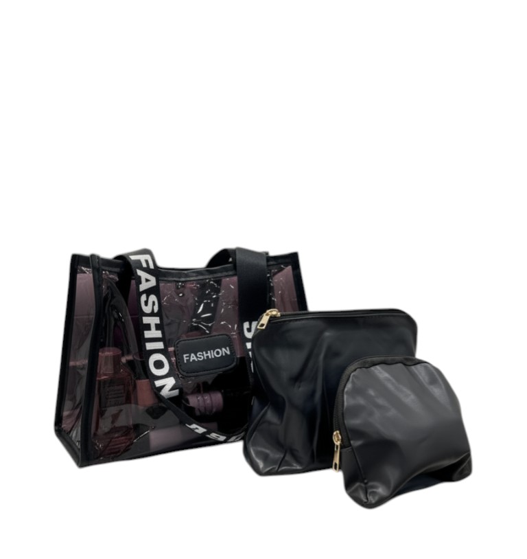Práctico set de 3 bolsos transparentes de diferentes tamaños, ideales para organizar cosméticos, artículos de higiene o accesorios. Su diseño transparente permite ver fácilmente el contenido, siendo perfectos para viajes o para mantener todo ordenado en casa.