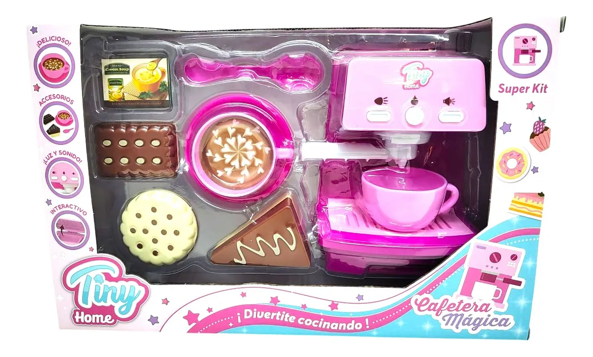 DIVERTITE CON ESTE INCREIBLE SET DE TINY HOME. LA CAFETERA ES A PILA , TIENE LUZ Y SONIDO. INCLUYE ACCESORIOS. MEDIDAS DEL EMBALAJE:34X22X9CM MARCA: TINY HOME. + 3 AÑOS.